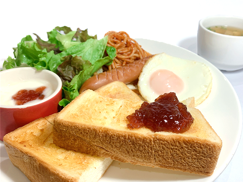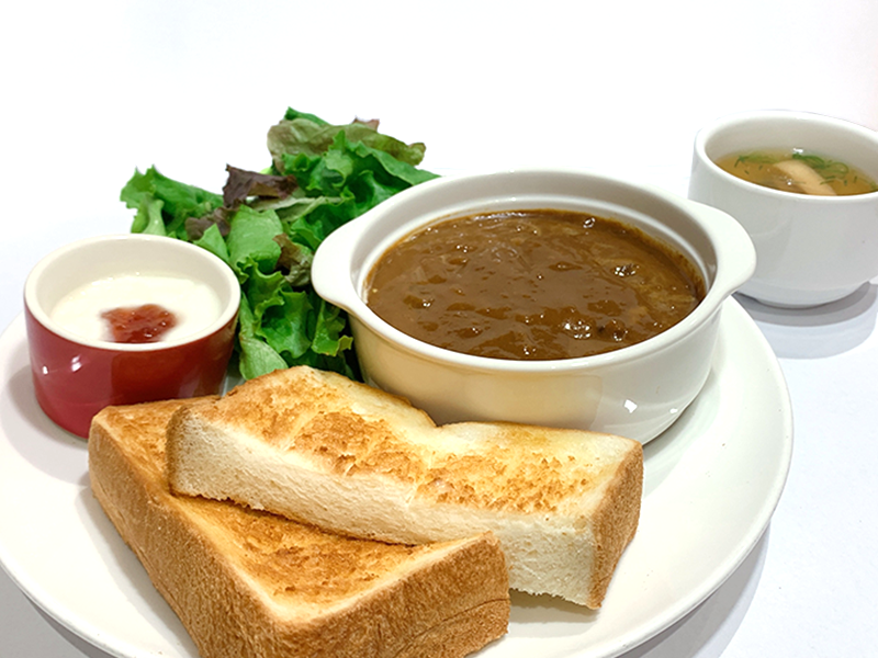 朝食メニューは、和洋の豊富なバラエティーからお好みをお選びいただけます。丼やカレーなどのボリューム満点メニューから、トーストとサラダがメインの軽いお食事まで、一日の予定や体調に合わせて、ご自由にお選びください。 ※メニューは季節等で変更となる場合がございます。